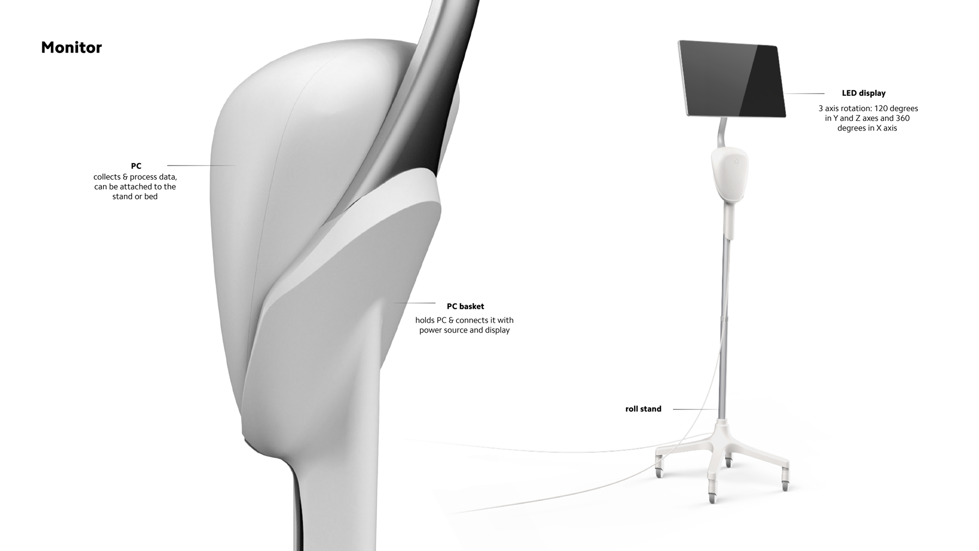 Furthermore, during our project we developed more than the initial system that was the goal. Alongside the development of the system a new design vision for the patient monitor was developed. Not only represents the new monitor the innovation and calmness the UltiMo aims to bring, it is also designed in they same styles as the beacons and camera.